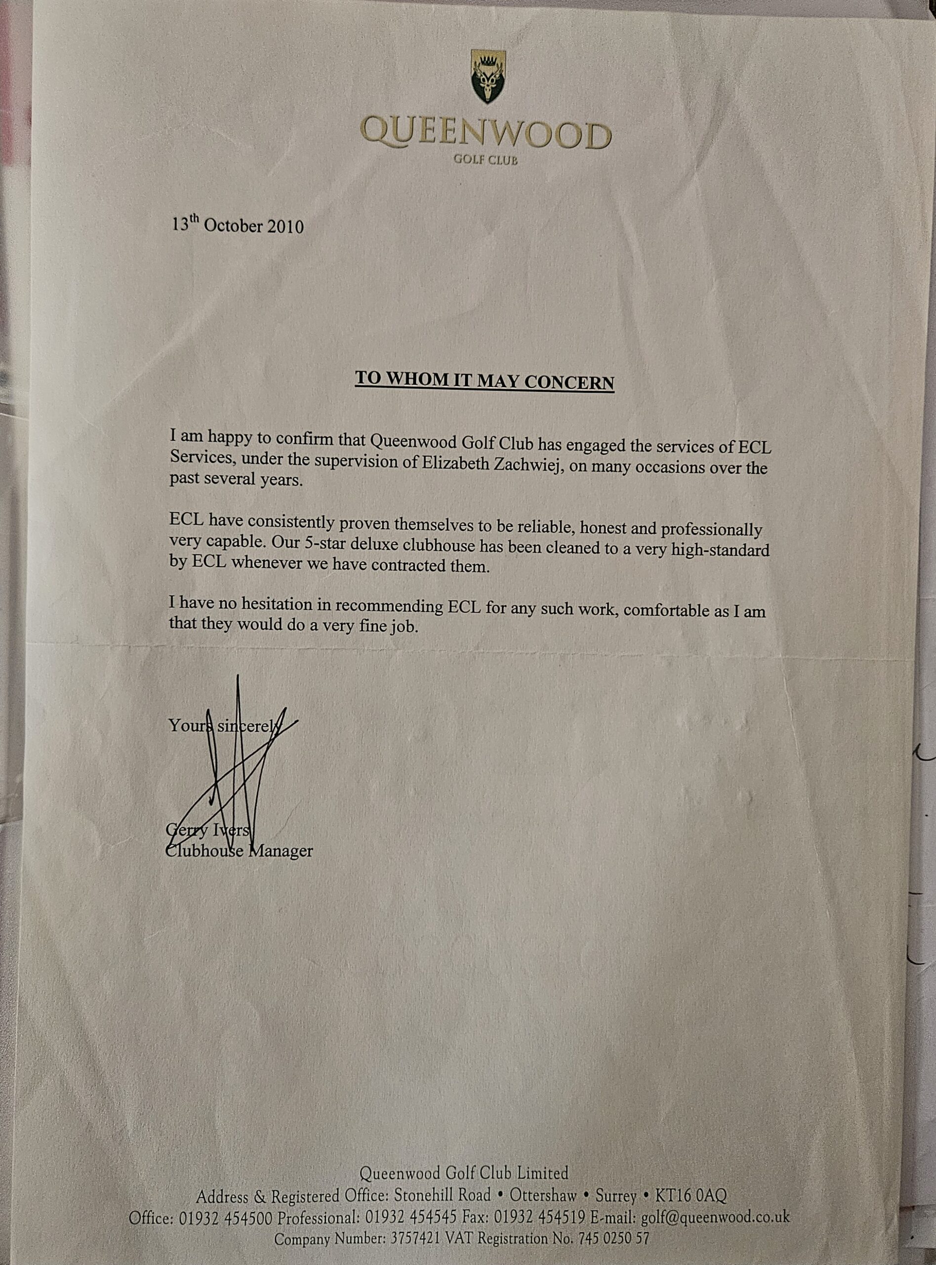We are a sales agent for our partner Elizabeth’s Cleaning Services, which has been operating since 2002 and apart from the final cleaning of our construction sites, we also provide cleaning services for over 200 private and institutional clients in London, Walton on Thames and Woking, including: